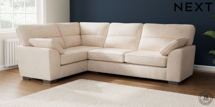 7.2.10 Buy Stamford Highback Large Corner Sofa - Left Hand Boucle Chenille Oyster Large Square Angle - Gunmetal from the Next UK online shop Click here to use our accessible website