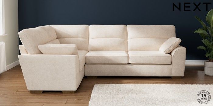 7.2.10 Buy Stamford Highback Large Corner Sofa - Left Hand Boucle Chenille Oyster Large Square Angle - Mid from the Next UK online shop Click here to use our accessible website