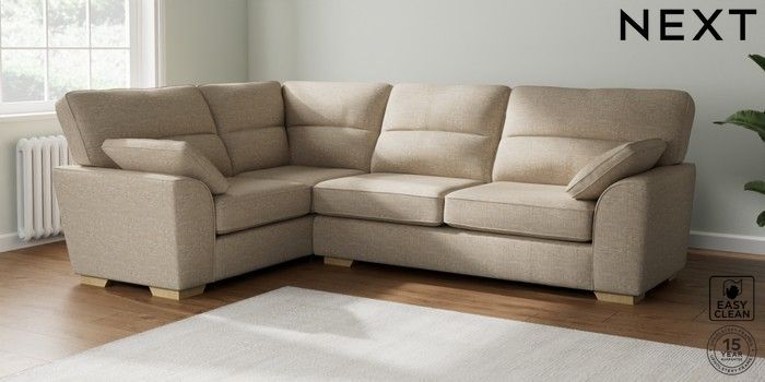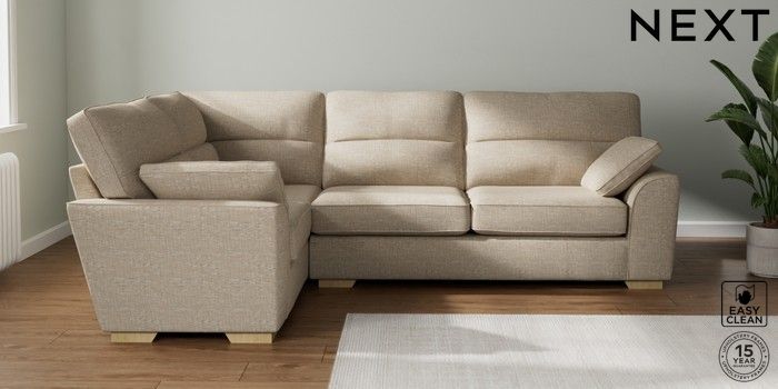 7.2.10 Buy Stamford Highback Large Corner Sofa - Left Hand Boucle Weave Easy Clean Dark Natural Large Square Angle - Light from the Next UK online shop Click here to use our accessible website