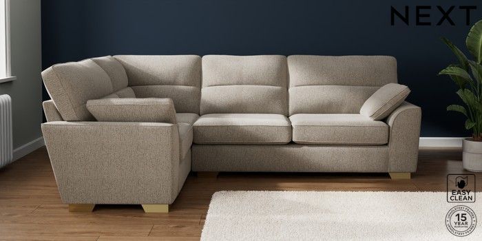 7.2.10 Buy Stamford Highback Large Corner Sofa - Left Hand Chunky Boucle Easy Clean Dove Large Square Angle - Brushed Brass from the Next UK online shop Click here to use our accessible website