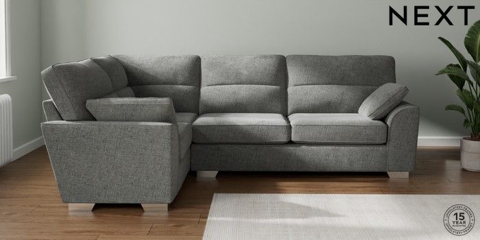 7.2.10 Buy Stamford Highback Large Corner Sofa - Left Hand Chunky Chenille Dark Grey Large Square Angle - Chrome Metal from the Next UK online shop Click here to use our accessible website