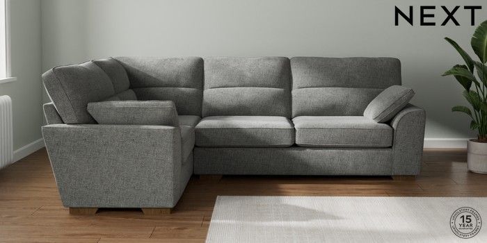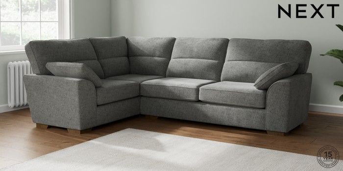 7.2.10 Buy Stamford Highback Large Corner Sofa - Left Hand Chunky Chenille Dark Grey Large Square Angle - Mid from the Next UK online shop Click here to use our accessible website