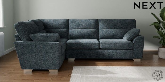 7.2.10 Buy Stamford Highback Large Corner Sofa - Left Hand Chunky Chenille Dark Navy Blue Large Square Angle - Chrome Metal from the Next UK online shop Click here to use our accessible website