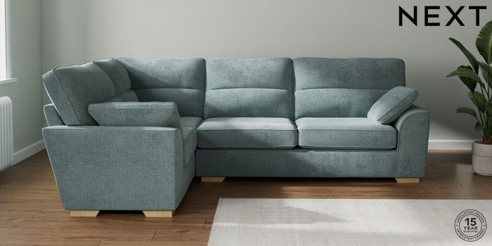 7.2.10 Buy Stamford Highback Large Corner Sofa - Left Hand Chunky Chenille Light Teal Green Large Square Angle - Light from the Next UK online shop Click here to use our accessible website