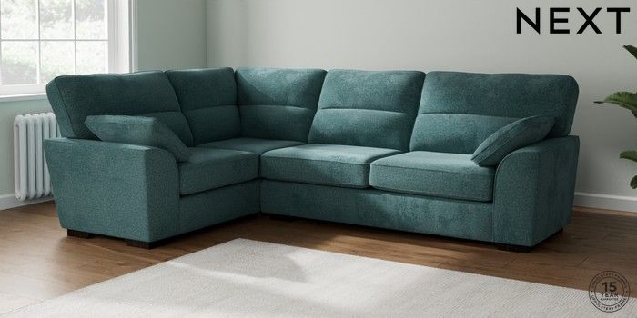 7.2.6 Buy Stamford Highback Large Corner Sofa - Left Hand Chunky Chenille Mid Teal Green Large Square Angle - Dark from the Next UK online shop Click here to use our accessible website
