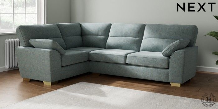 7.2.10 Buy Stamford Highback Large Corner Sofa - Left Hand Chunky Marl Mid Blue Large Square Angle - Brushed Brass from the Next UK online shop Click here to use our accessible website