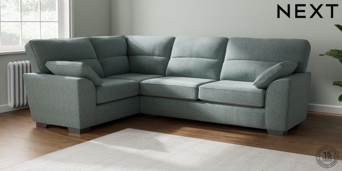 7.2.6 Buy Stamford Highback Large Corner Sofa - Left Hand Chunky Marl Mid Blue Large Square Angle - Gunmetal from the Next UK online shop Click here to use our accessible website
