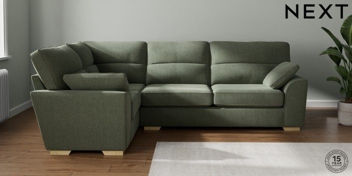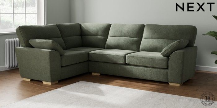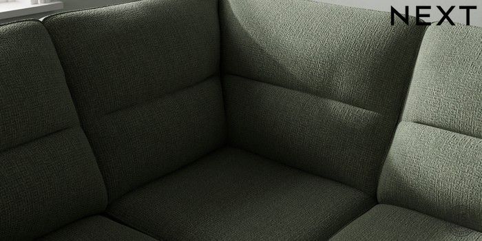 7.2.10 Buy Stamford Highback Large Corner Sofa - Left Hand Chunky Texture Mid Forest Green Large Square Angle - Light from the Next UK online shop Click here to use our accessible website