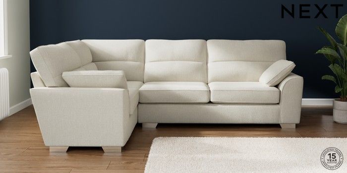 7.2.10 Buy Stamford Highback Large Corner Sofa - Left Hand Chunky Texture Oyster Large Square Angle - Chrome Metal from the Next UK online shop Click here to use our accessible website