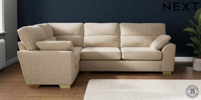 7.2.10 Buy Stamford Highback Large Corner Sofa - Left Hand Chunky Weave Cream Large Square Angle - Brushed Brass from the Next UK online shop Click here to use our accessible website