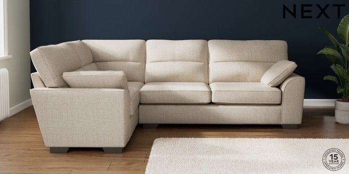 7.2.10 Buy Stamford Highback Large Corner Sofa - Left Hand Chunky Weave Mid Natural Large Square Angle - Gunmetal from the Next UK online shop Click here to use our accessible website