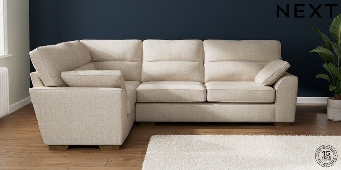 7.2.10 Buy Stamford Highback Large Corner Sofa - Left Hand Chunky Weave Mid Natural Large Square Angle - Mid from the Next UK online shop Click here to use our accessible website