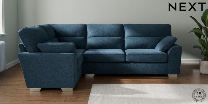 7.2.10 Buy Stamford Highback Large Corner Sofa - Left Hand Cotswold Chenille Dark Blue Large Square Angle - Chrome Metal from the Next UK online shop Click here to use our accessible website