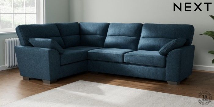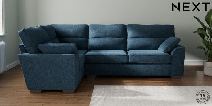 7.2.10 Buy Stamford Highback Large Corner Sofa - Left Hand Cotswold Chenille Dark Blue Large Square Angle - Gunmetal from the Next UK online shop Click here to use our accessible website