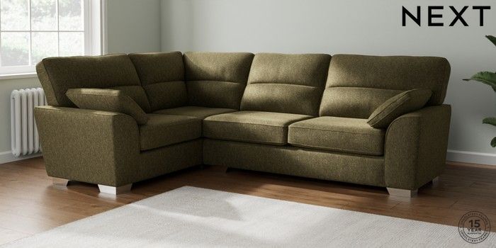 6.12.1 Buy Stamford Highback Large Corner Sofa - Left Hand Cotswold Chenille Dark Green Large Square Angle - Chrome Metal from the Next UK online shop Click here to use our accessible website