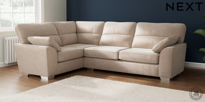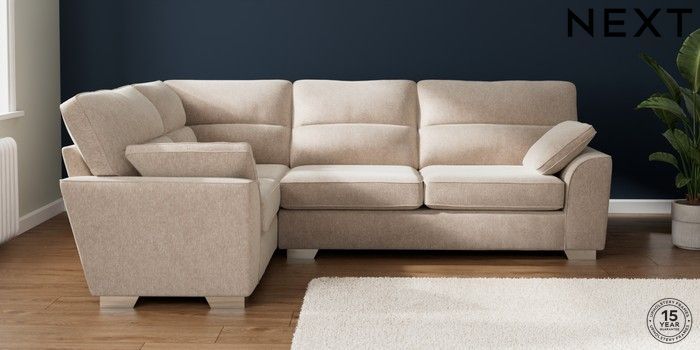 7.2.10 Buy Stamford Highback Large Corner Sofa - Left Hand Cotswold Chenille Light Natural Large Square Angle - Chrome Metal from the Next UK online shop Click here to use our accessible website