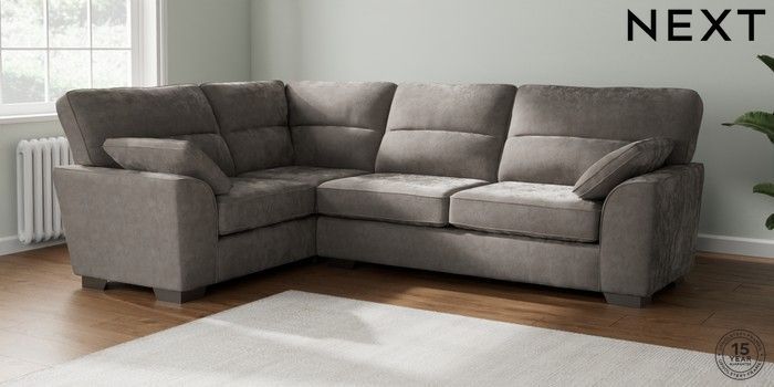 6.12.1 Buy Stamford Highback Large Corner Sofa - Left Hand Distressed Velour French Grey Large Square Angle - Gunmetal from the Next UK online shop Click here to use our accessible website