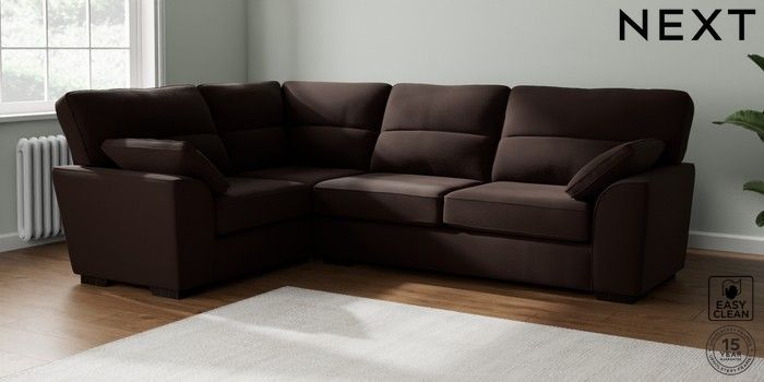 6.12.1 Buy Stamford Highback Large Corner Sofa - Left Hand Fine Chenille Easy Clean Chocolate Brown Large Square Angle - Dark from the Next UK online shop Click here to use our accessible website