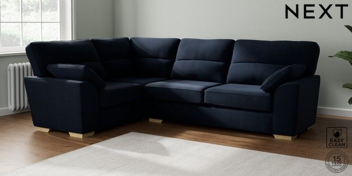 7.2.6 Buy Stamford Highback Large Corner Sofa - Left Hand Fine Chenille Easy Clean Dark Navy Blue Large Square Angle - Light from the Next UK online shop Click here to use our accessible website