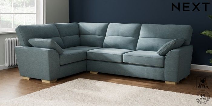7.2.6 Buy Stamford Highback Large Corner Sofa - Left Hand Fine Chenille Easy Clean Mid Blue Large Square Angle - Light from the Next UK online shop Click here to use our accessible website