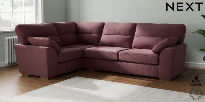 7.2.6 Buy Stamford Highback Large Corner Sofa - Left Hand Fine Chenille Easy Clean Mid Mulberry Purple Large Square Angle - Mid from the Next UK online shop Click here to use our accessible website
