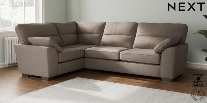 7.2.6 Buy Stamford Highback Large Corner Sofa - Left Hand Fine Chenille Easy Clean Mid Taupe Brown Large Square Angle - Gunmetal from the Next UK online shop Click here to use our accessible website