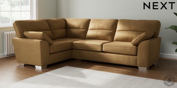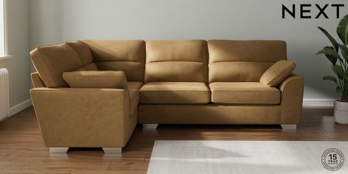 7.2.6 Buy Stamford Highback Large Corner Sofa - Left Hand Luxe Chenille Honey Yellow Large Square Angle - Chrome Metal from the Next UK online shop Click here to use our accessible website