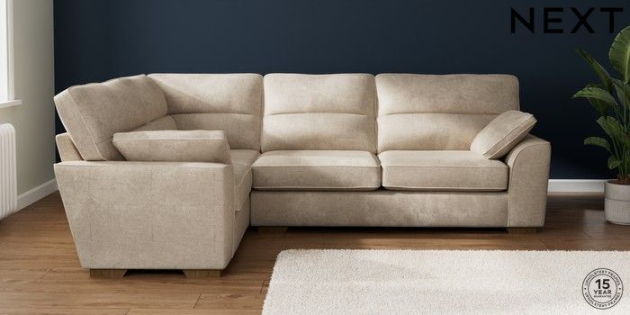 7.2.10 Buy Stamford Highback Large Corner Sofa - Left Hand Plush Chenille Light Natural Large Square Angle - Mid from the Next UK online shop Click here to use our accessible website
