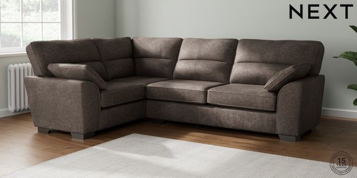 7.3.1 Buy Stamford Highback Large Corner Sofa - Left Hand Plush Chenille Mink Brown Large Square Angle - Gunmetal from the Next UK online shop Click here to use our accessible website