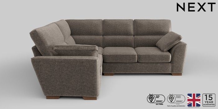 6.12.1 Buy Stamford Highback Large Corner Sofa - Left Hand Plush Chenille Mink Brown Large Square Angle - Mid from the Next UK online shop Click here to use our accessible website