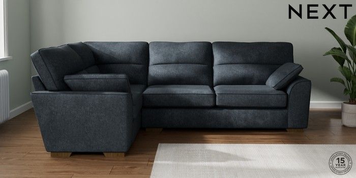 7.2.10 Buy Stamford Highback Large Corner Sofa - Left Hand Plush Chenille Slate Blue Large Square Angle - Mid from the Next UK online shop Click here to use our accessible website