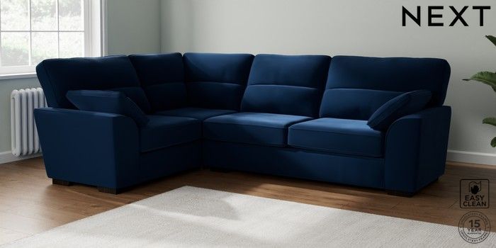 7.2.6 Buy Stamford Highback Large Corner Sofa - Left Hand Plush Velvet Easy Clean Navy Blue Large Square Angle - Dark from the Next UK online shop Click here to use our accessible website