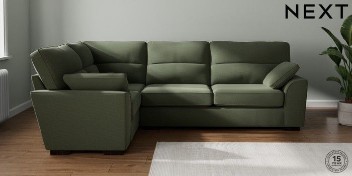 7.2.10 Buy Stamford Highback Large Corner Sofa - Left Hand Relaxed Linen Look Dark Green Large Square Angle - Dark from the Next UK online shop Click here to use our accessible website