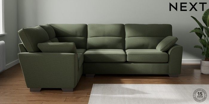 7.3.1 Buy Stamford Highback Large Corner Sofa - Left Hand Relaxed Linen Look Dark Green Large Square Angle - Gunmetal from the Next UK online shop Click here to use our accessible website