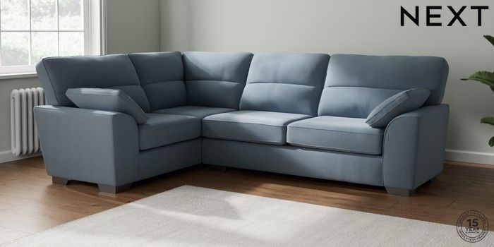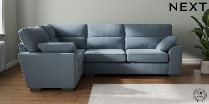 7.2.10 Buy Stamford Highback Large Corner Sofa - Left Hand Relaxed Linen Look Mid Blue Large Square Angle - Gunmetal from the Next UK online shop Click here to use our accessible website