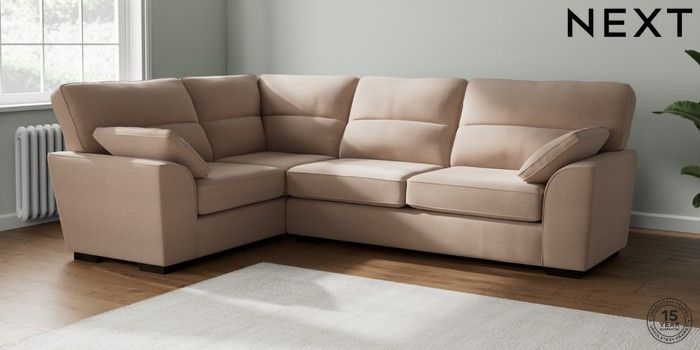 7.2.10 Buy Stamford Highback Large Corner Sofa - Left Hand Relaxed Linen Look Mid Natural Large Square Angle - Dark from the Next UK online shop Click here to use our accessible website