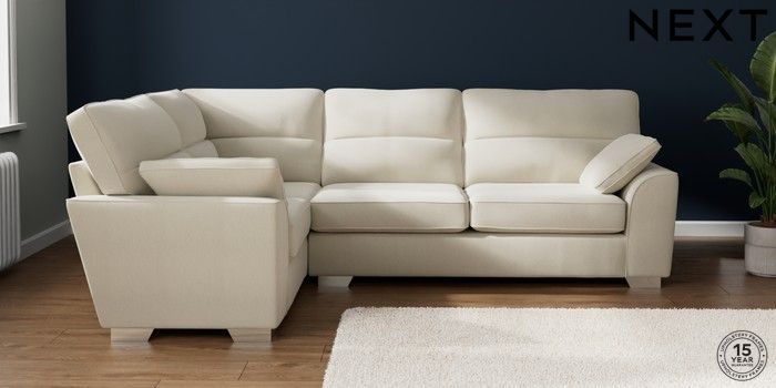 7.2.10 Buy Stamford Highback Large Corner Sofa - Left Hand Relaxed Linen Look Oyster Large Square Angle - Chrome Metal from the Next UK online shop Click here to use our accessible website