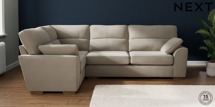7.2.10 Buy Stamford Highback Large Corner Sofa - Left Hand Ripple Chenille Light Natural Large Square Angle - Mid from the Next UK online shop Click here to use our accessible website