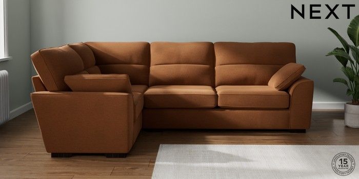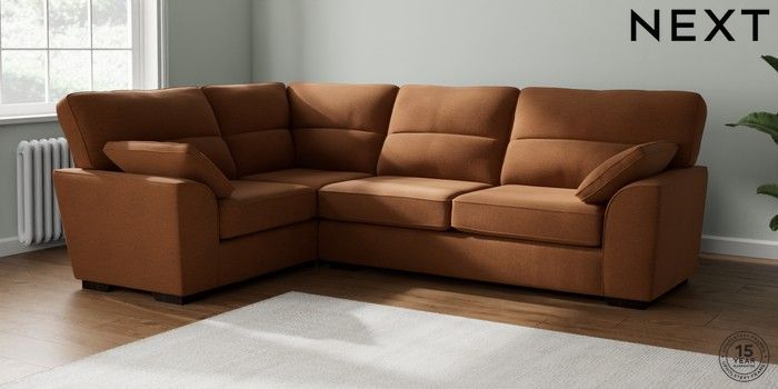 7.2.10 Buy Stamford Highback Large Corner Sofa - Left Hand Ripple Chenille Mid Rust Brown Large Square Angle - Dark from the Next UK online shop Click here to use our accessible website