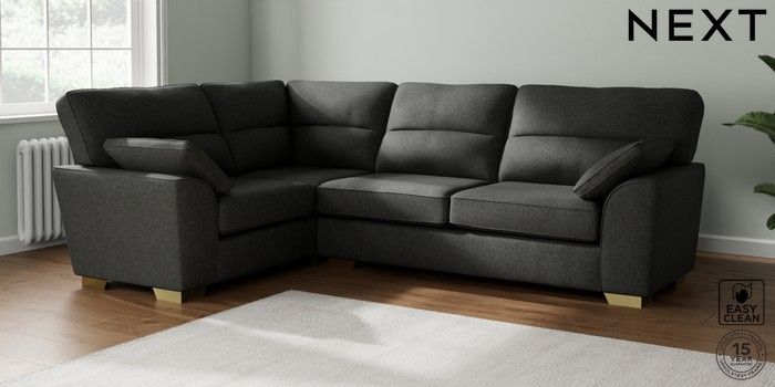 7.3.1 Buy Stamford Highback Large Corner Sofa - Left Hand Tweedy Blend Easy Clean Charcoal Grey Large Square Angle - Brushed Brass from the Next UK online shop Click here to use our accessible website