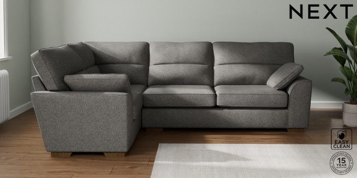 7.2.10 Buy Stamford Highback Large Corner Sofa - Left Hand Tweedy Blend Easy Clean Dark Grey Large Square Angle - Mid from the Next UK online shop Click here to use our accessible website