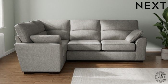 7.2.10 Buy Stamford Highback Large Corner Sofa - Left Hand Tweedy Chenille Mid Grey Large Square Angle - Dark from the Next UK online shop Click here to use our accessible website