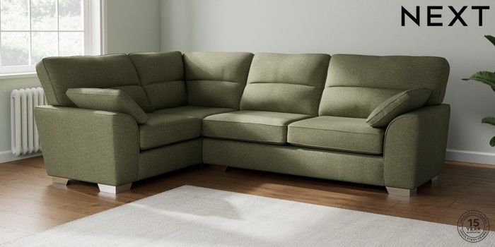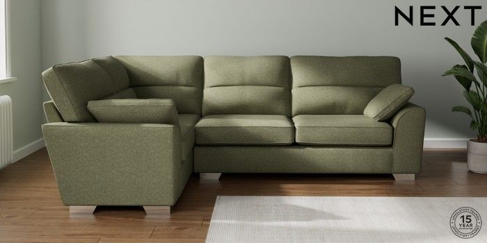 7.3.1 Buy Stamford Highback Large Corner Sofa - Left Hand Tweedy Chenille Mid Moss Green Large Square Angle - Chrome Metal from the Next UK online shop Click here to use our accessible website