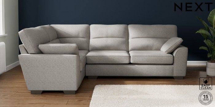 7.2.10 Buy Stamford Highback Large Corner Sofa - Left Hand Woven Chenille Easy Clean Light Grey Large Square Angle - Gunmetal from the Next UK online shop Click here to use our accessible website