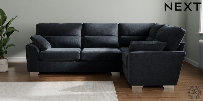 7.2.10 Buy Stamford Highback Large Corner Sofa - Right Hand Boucle Chenille Dark Slate Blue Large Square Angle - Chrome Metal from the Next UK online shop Click here to use our accessible website