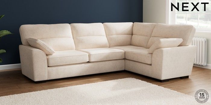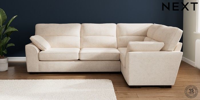 7.2.10 Buy Stamford Highback Large Corner Sofa - Right Hand Boucle Chenille Oyster Large Square Angle - Dark from the Next UK online shop Click here to use our accessible website