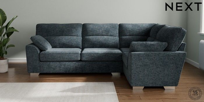 7.2.10 Buy Stamford Highback Large Corner Sofa - Right Hand Chunky Chenille Dark Navy Blue Large Square Angle - Chrome Metal from the Next UK online shop Click here to use our accessible website
