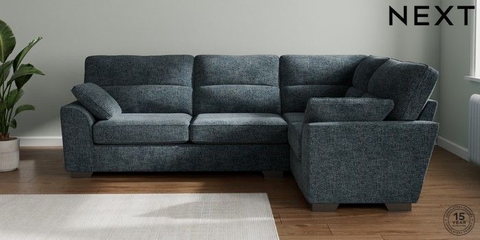 7.2.10 Buy Stamford Highback Large Corner Sofa - Right Hand Chunky Chenille Dark Navy Blue Large Square Angle - Gunmetal from the Next UK online shop Click here to use our accessible website