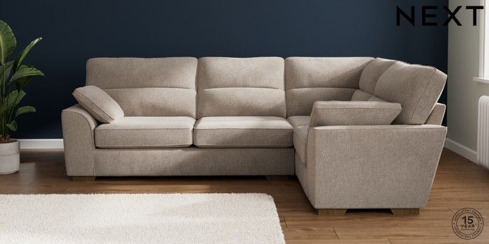 7.2.10 Buy Stamford Highback Large Corner Sofa - Right Hand Chunky Chenille Light Dove Large Square Angle - Mid from the Next UK online shop Click here to use our accessible website