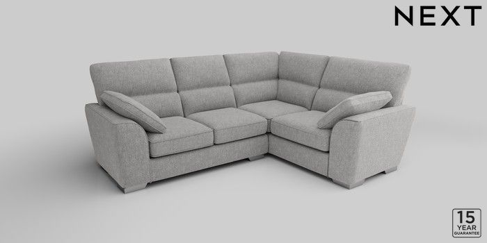 6.12.1 Buy Stamford Highback Large Corner Sofa - Right Hand Chunky Chenille Light Grey Large Square Angle - Chrome Metal from the Next UK online shop Click here to use our accessible website